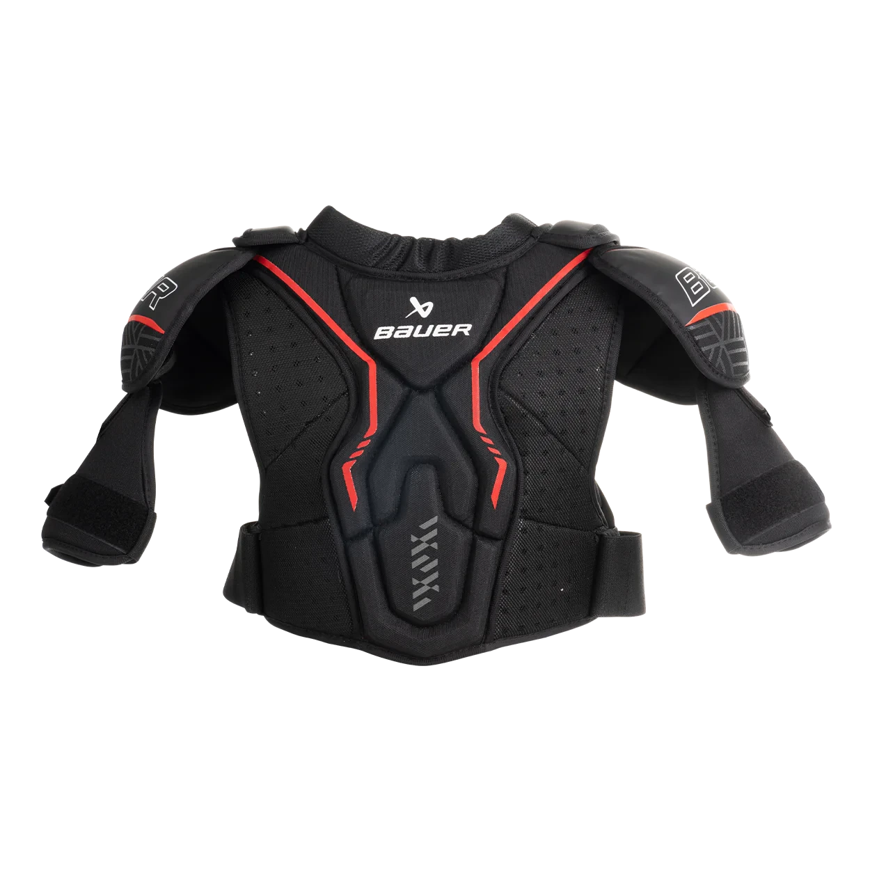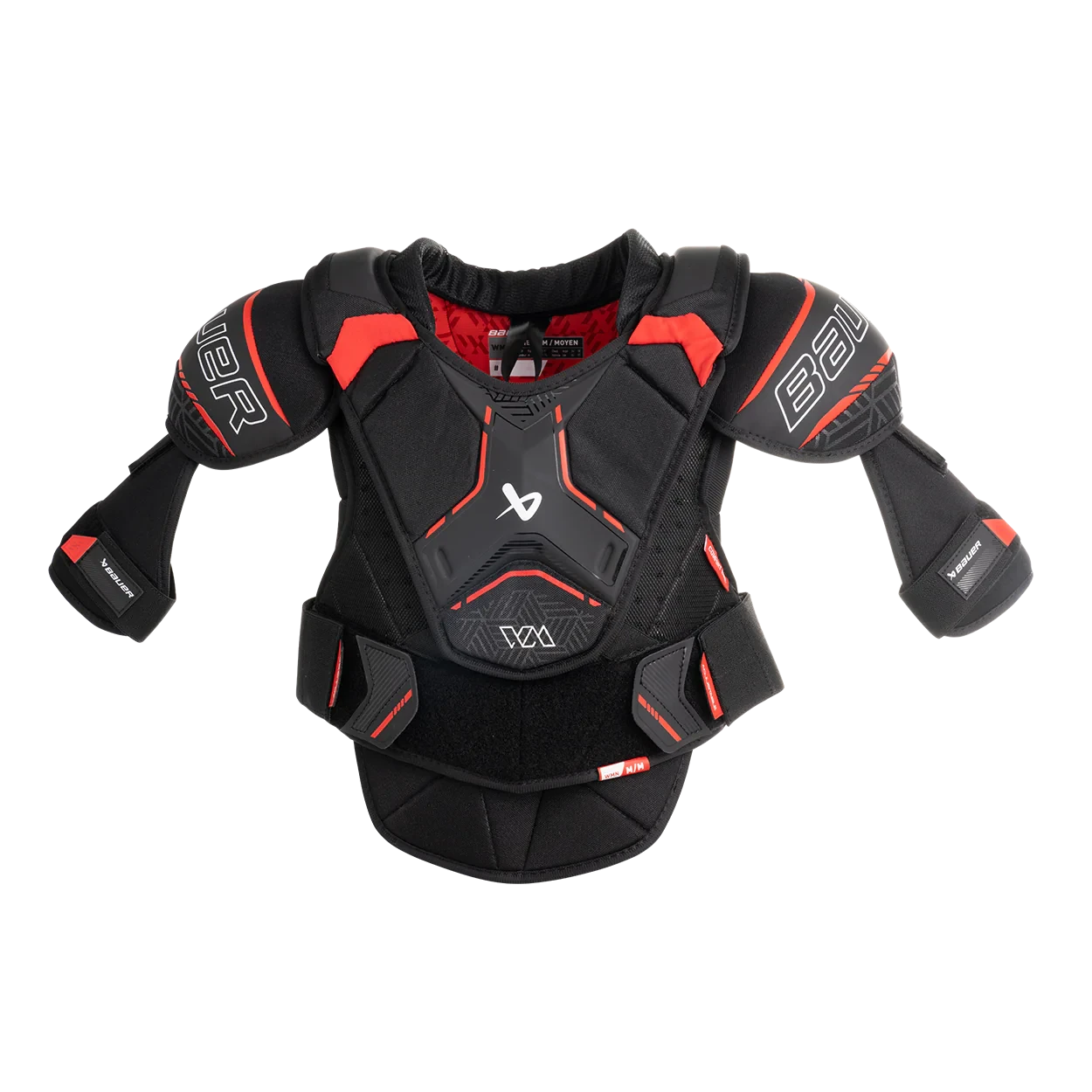 - Extended Sternum Coverage – Battle for pucks confidently with a larger coverage area across the torso (when compared to VAPOR).