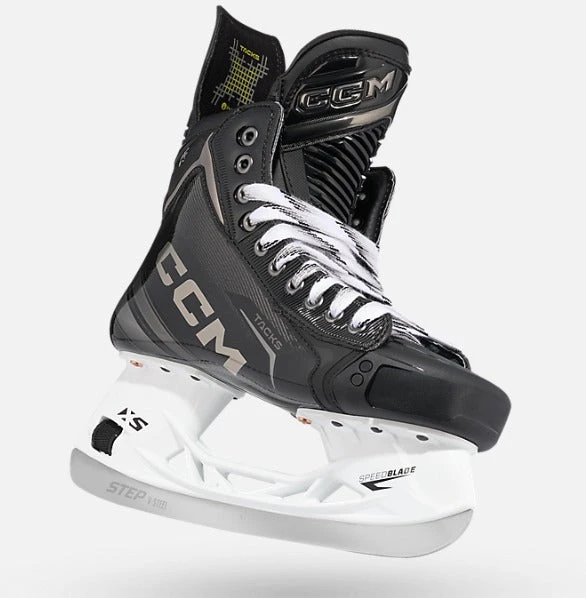 The TACKS XF skate sets a new standard for performance and comfort among elite skaters. Constructed with the innovative One-Piece Boot POWER and our new Game Ready Fit, it provides improved responsiveness and energy transfer for powerful skating. STEP V-Steel blades and the ADPT Comfort tongue with FlexMotion technology make every stride feel free and easy