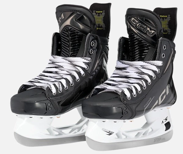 The TACKS XF skate sets a new standard for performance and comfort among elite skaters. Constructed with the innovative One-Piece Boot POWER and our new Game Ready Fit, it provides improved responsiveness and energy transfer for powerful skating. STEP V-Steel blades and the ADPT Comfort tongue with FlexMotion technology make every stride feel free and easy