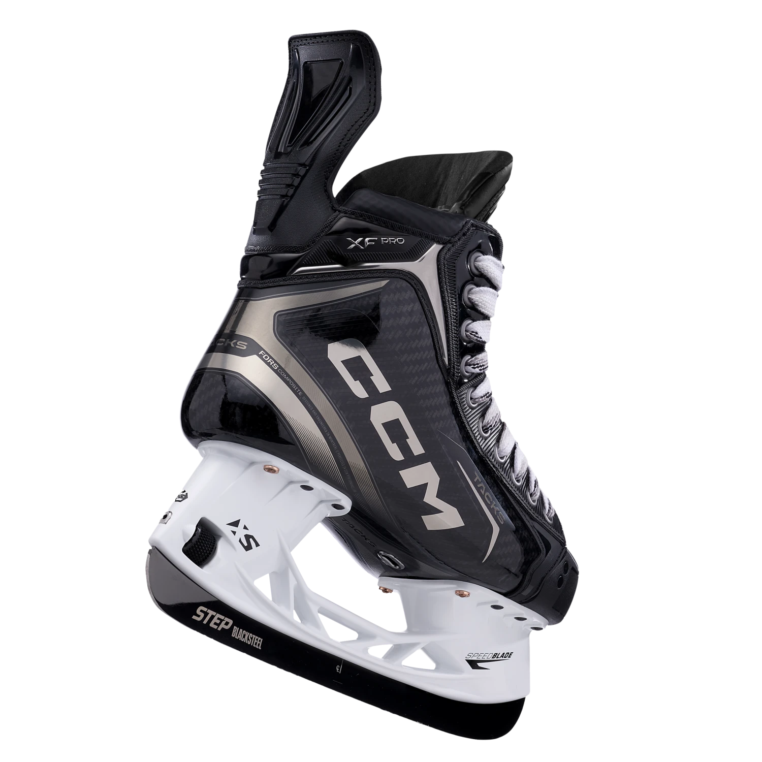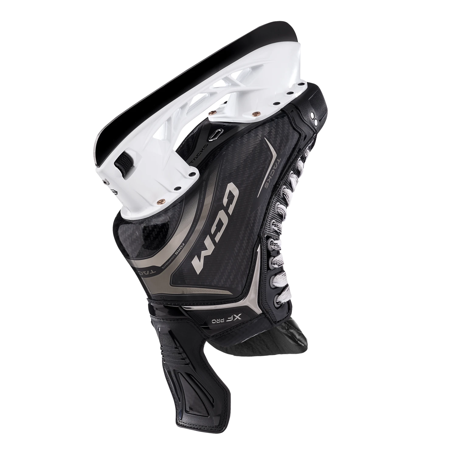 Our most advanced high-performance skate just got even better for those seeking unparalleled performance. Built with the new One-Piece Boot POWER featuring innovative FORS composite, the TACKS XF PRO is engineered to be lighter, more responsive, and more durable, while maintaining the same pro-level stiffness. Equipped with best-in-class STEP Blacksteel and our new Game Ready Fit for performance that never felt so good. The new TACKS XF PRO might be the only skates you’ll never want to take off.