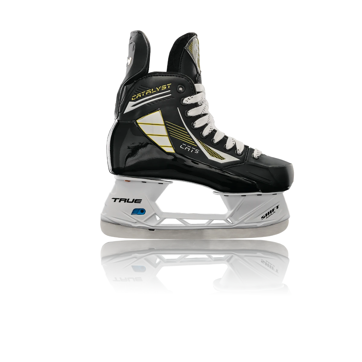 Featuring a lightweight one-piece fiberglass boot, a moderate shell stiffness, and a dynamic flex tendon guard, the CATALYST 5 is ideal for any player seeking the fit and elite performance benefits that are synonymous with TRUE skates at an economical price point and with added durability.